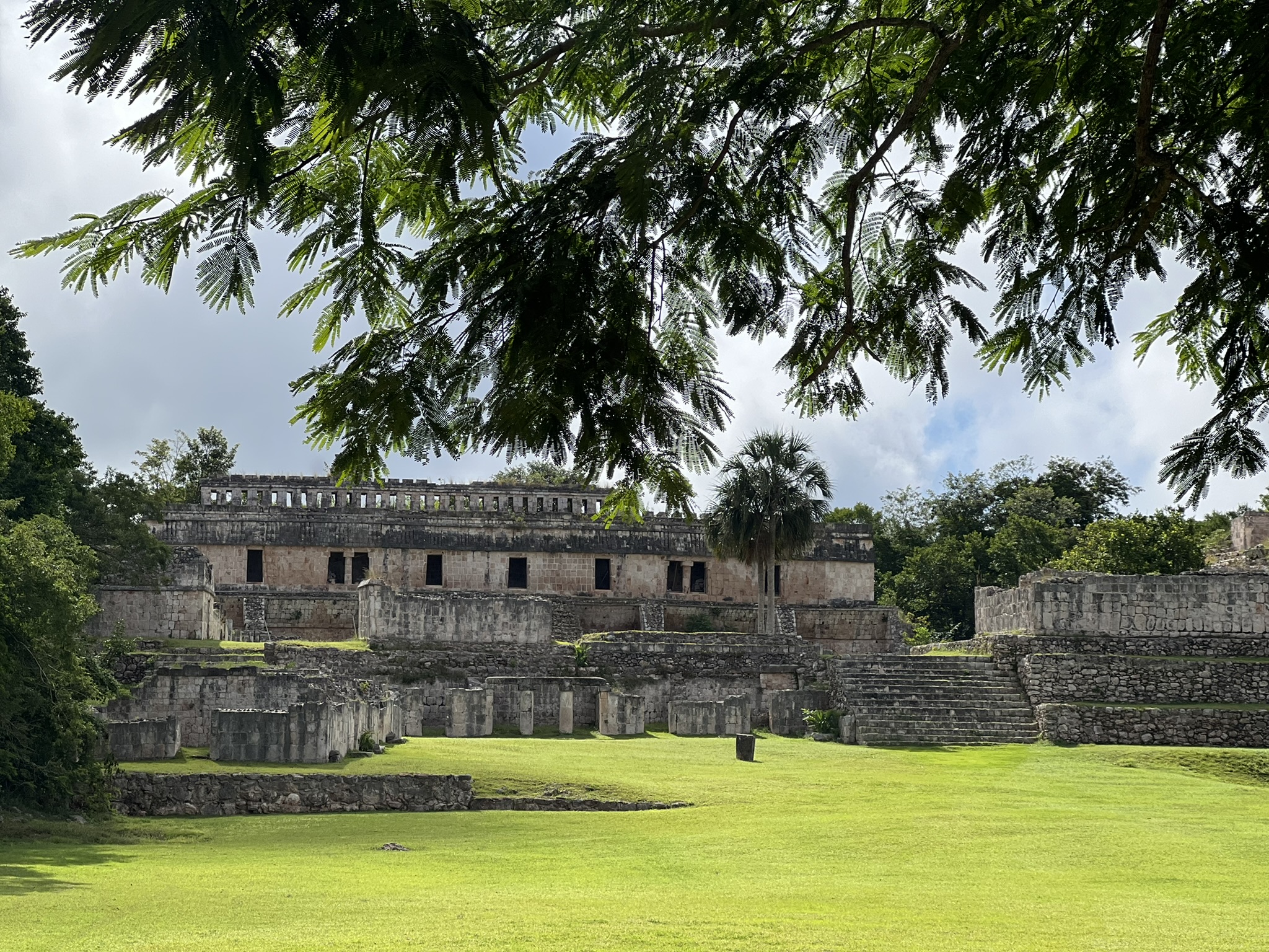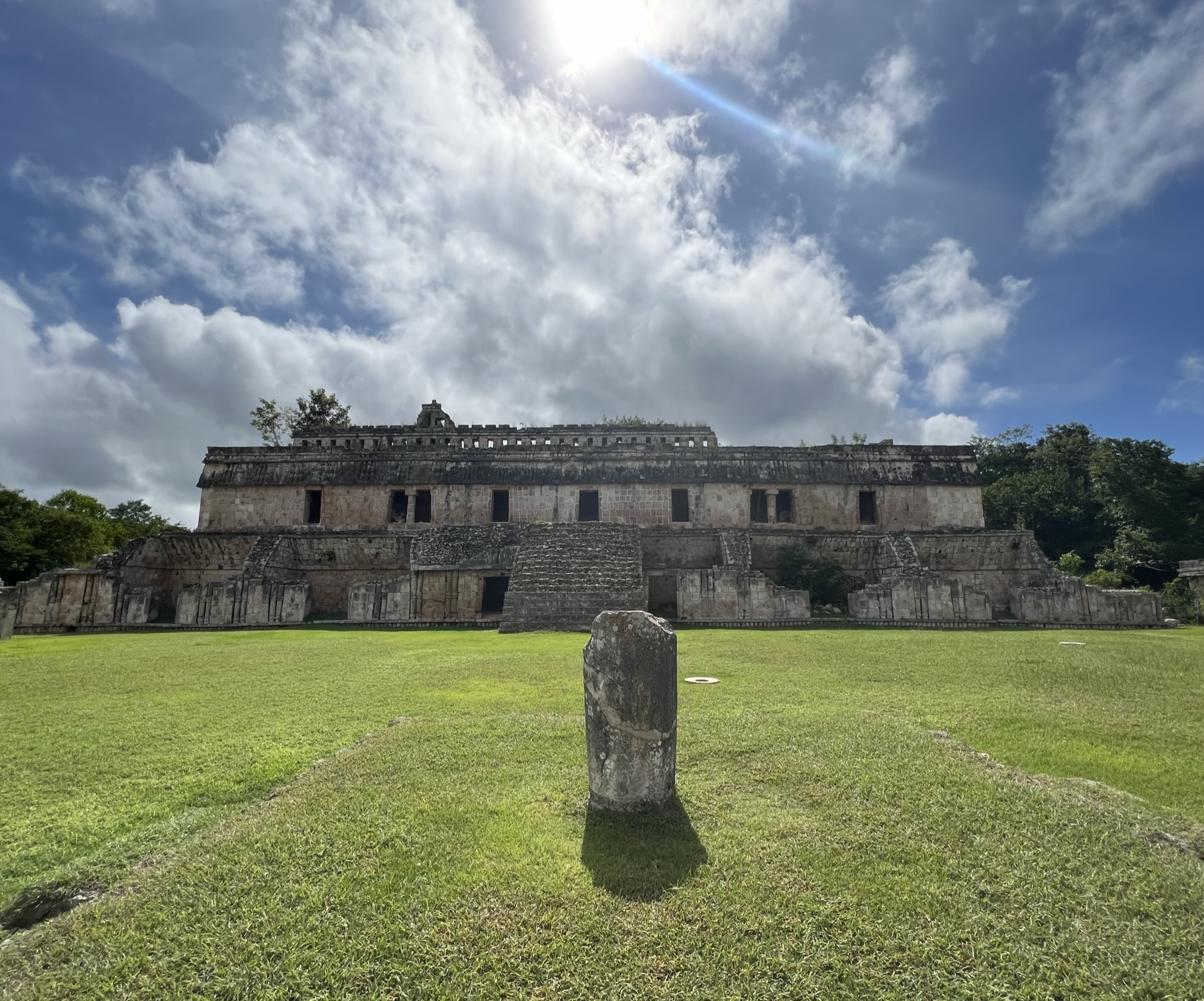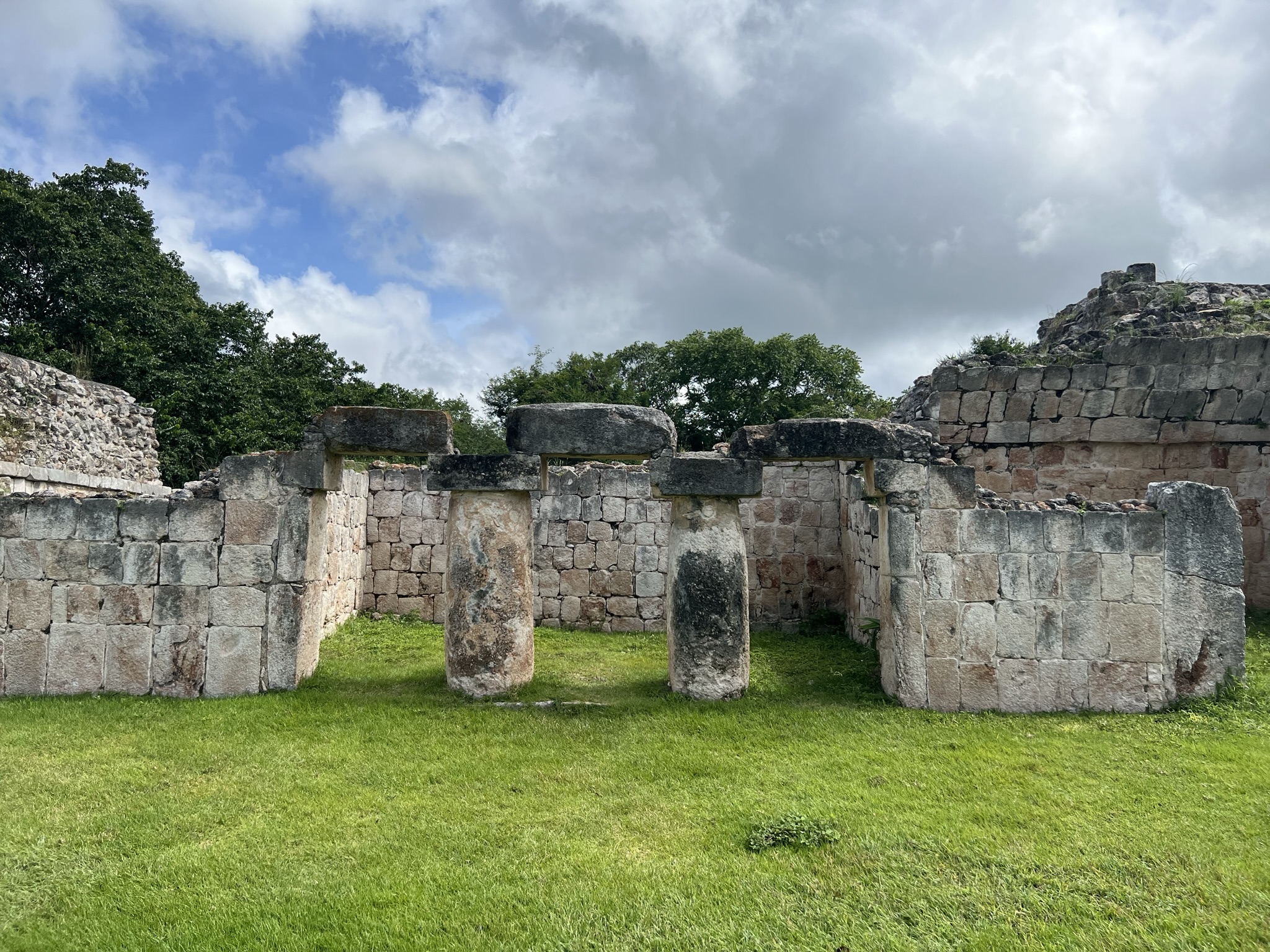After spending an appreciable amount of time trying to memorise as many details as possible, we then headed to the nearby Palace Plaza. Here, Dominic pointed out a number of recesses found on the ground. These, he explained, were chultuns: underground storage chambers that could hold anywhere from fifteen to a hundred litres of rainwater. Being far from natural water sources, the Maya of Kabah relied solely on rain – hence the multitude of Chaac masks and the cluster of chultuns lying around. Once again, this was a testament to the ancient civilisation’s incredible engineering prowess.