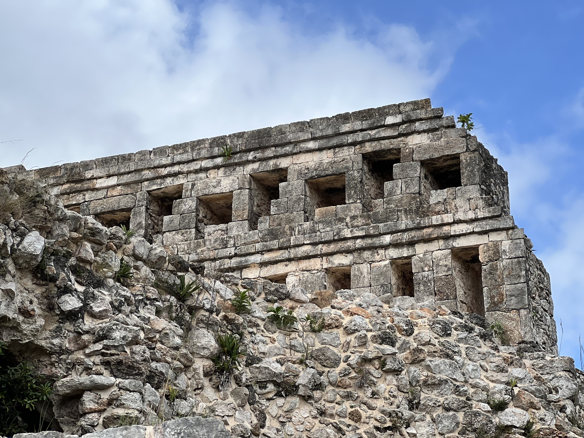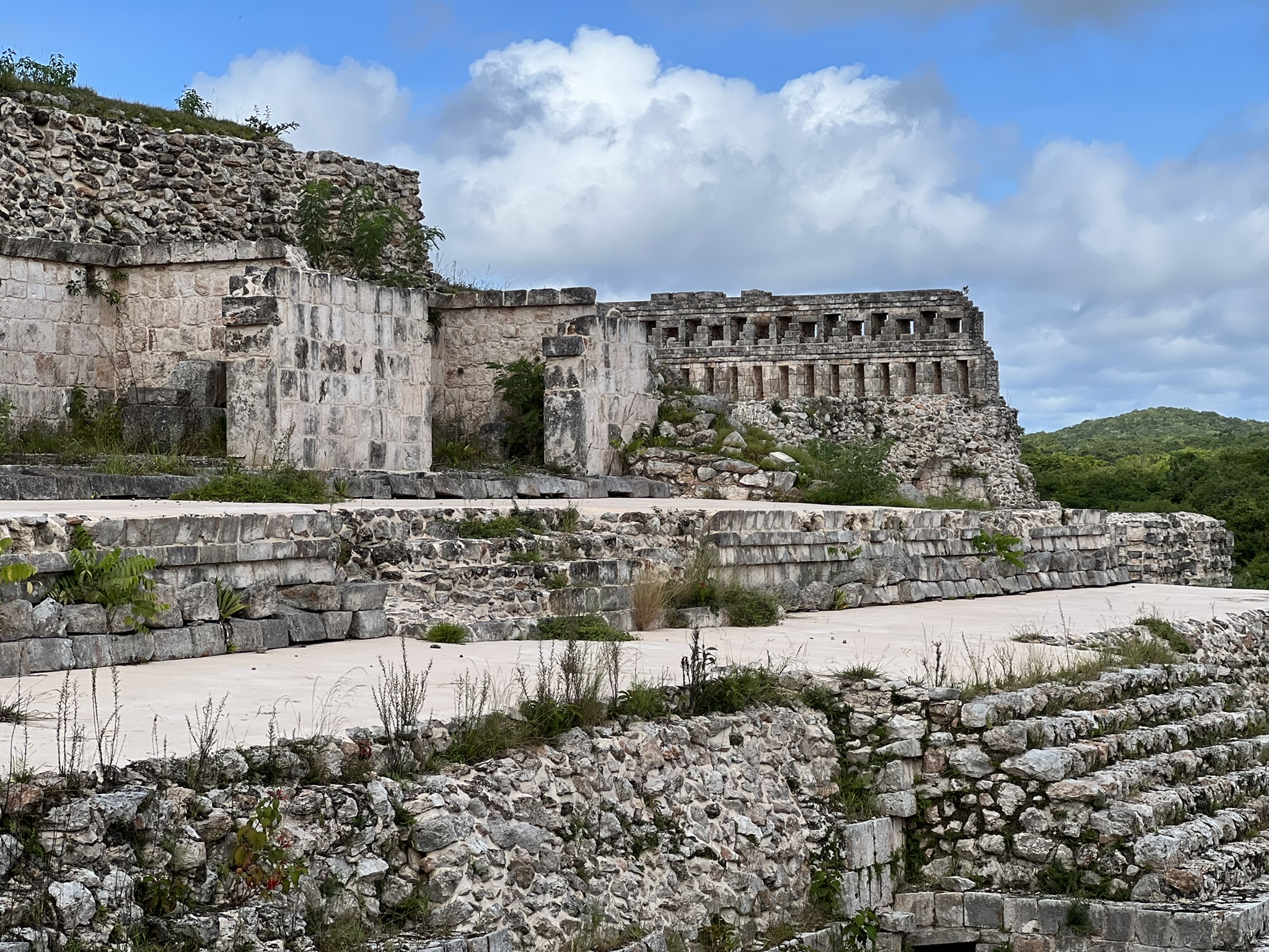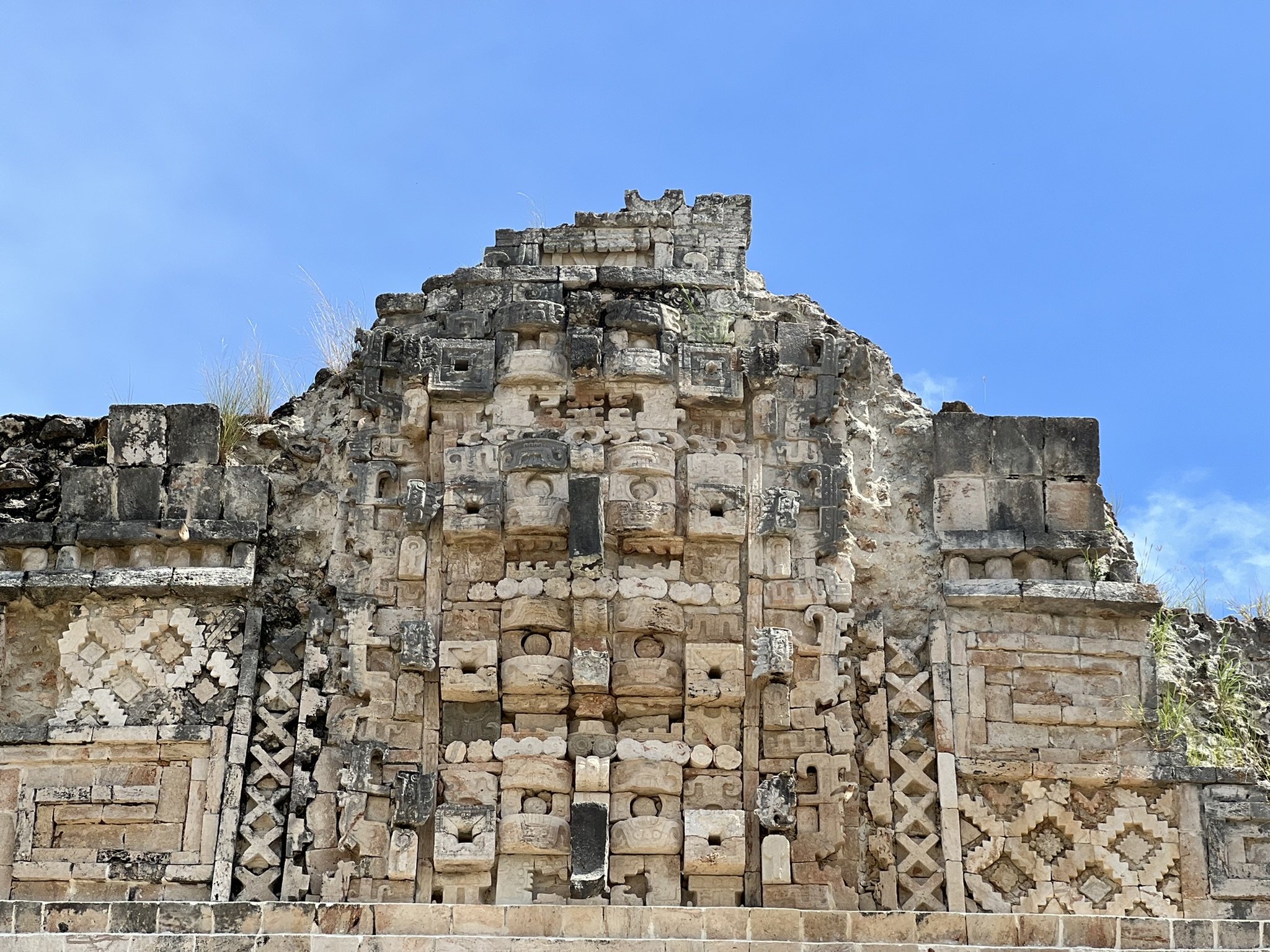 Unlike most archaeological day tours I had been on, this one would be taking us around a few sites. We started off with the ruins of the ancient city of Kabah. While this site might not be that popular with tourists, what’s striking about these ruins is its architecture – featuring the impressive Puuc style. This, Dominic explained, involves finely crafted veneer stones set into a concrete core, featuring intricately carved shapes and patterns. Whilst the city was founded around 600 AD, the buildings seen today are from the Classic period later on – probably the reason why most of the façades are still intact.