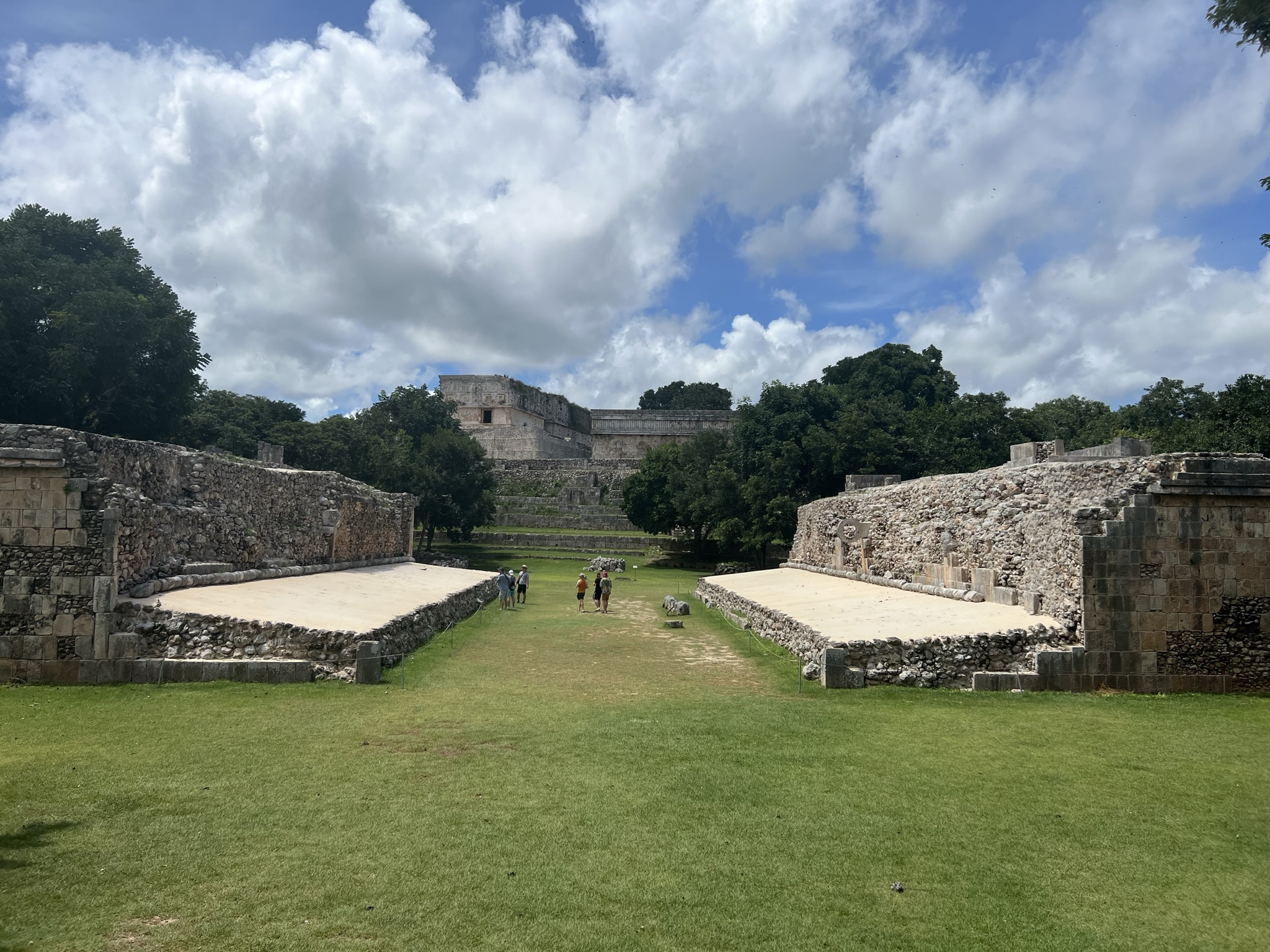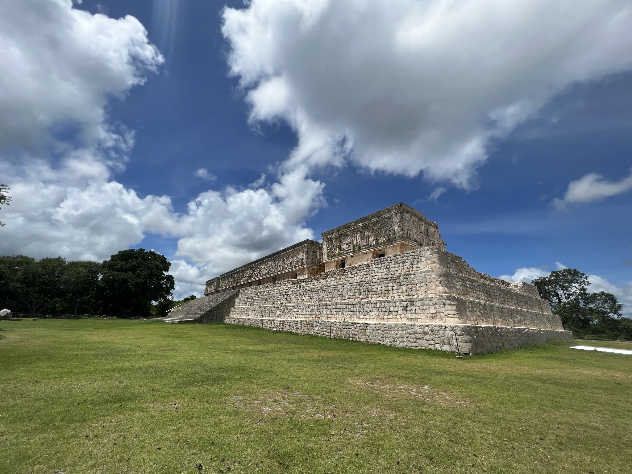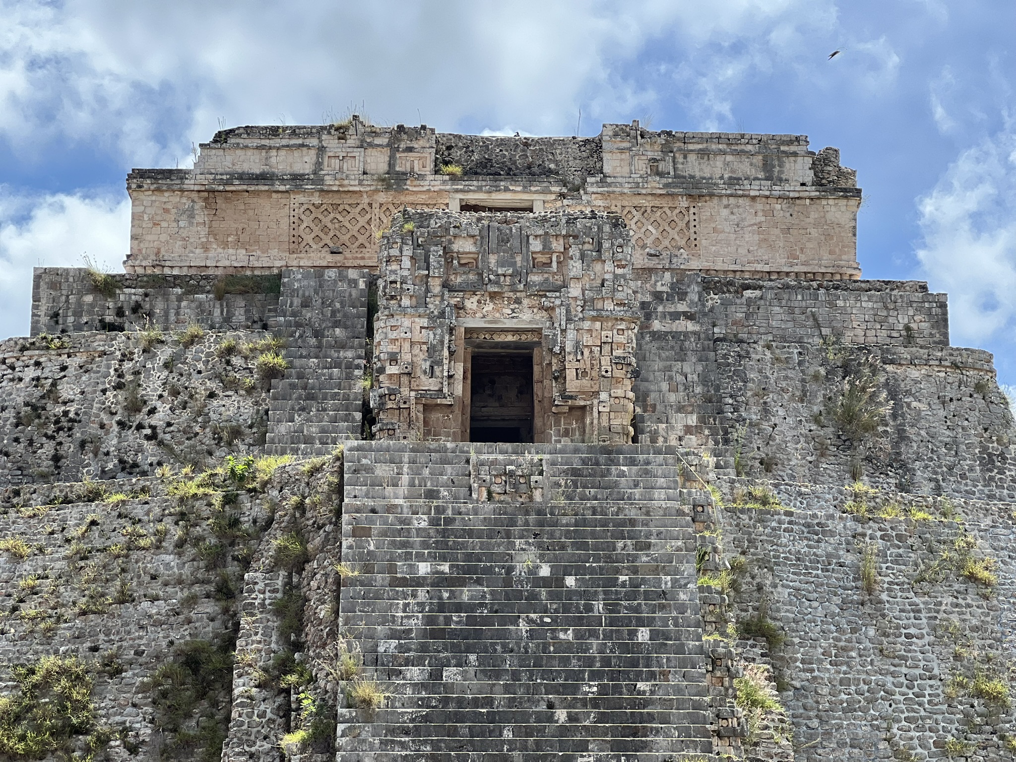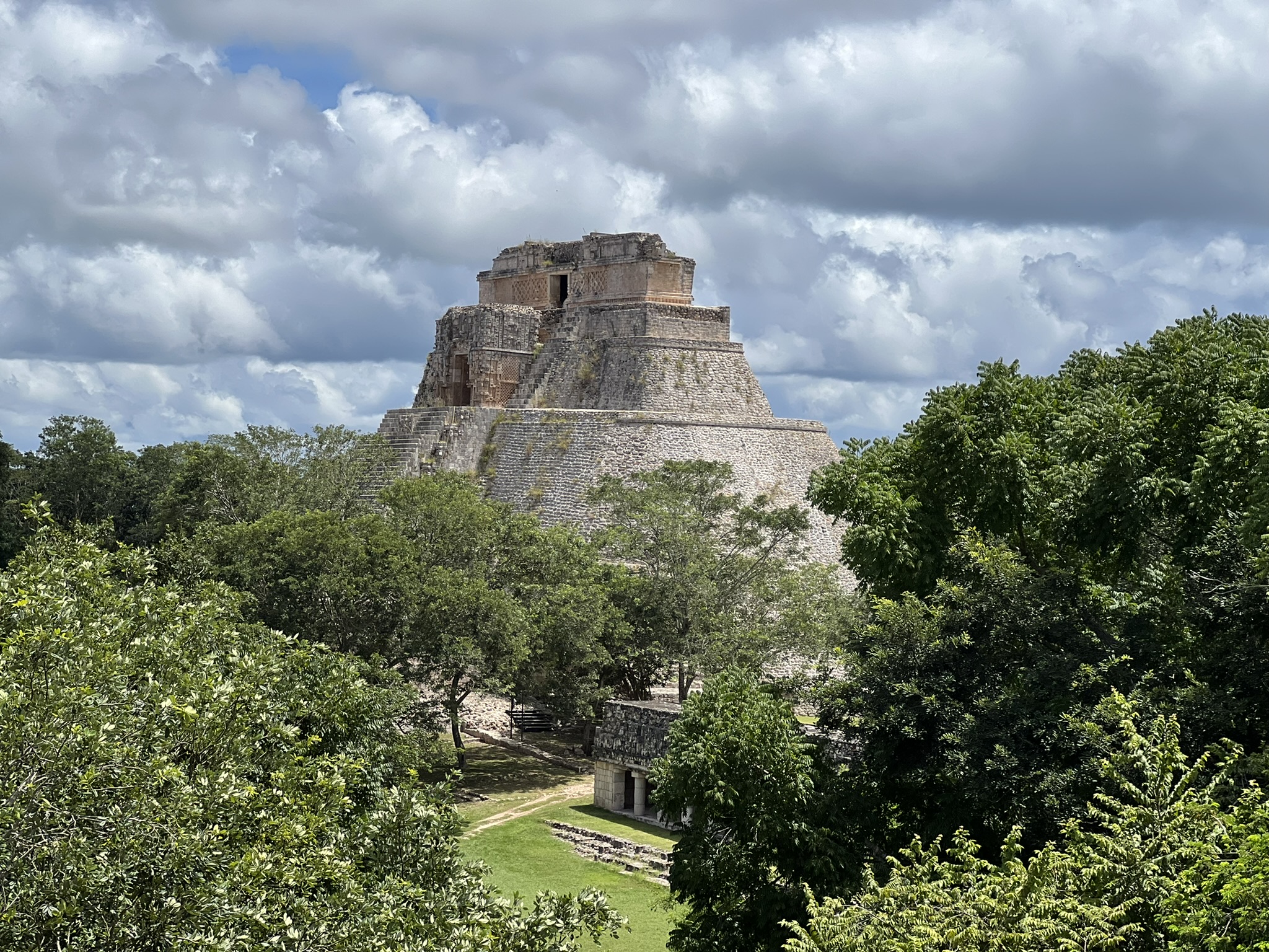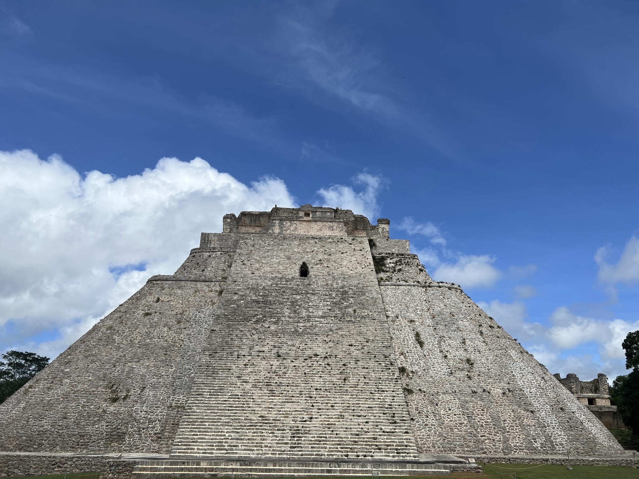 The first thing one sees upon entering the site is a large, majestic structure called the Pyramid of the Magician: a 35-metre-high, remarkably well-preserved, ovaloid pyramid. It was built five times over, with multiple temples at both its base and summit, and intricately carved masks of Chaac adorning it.