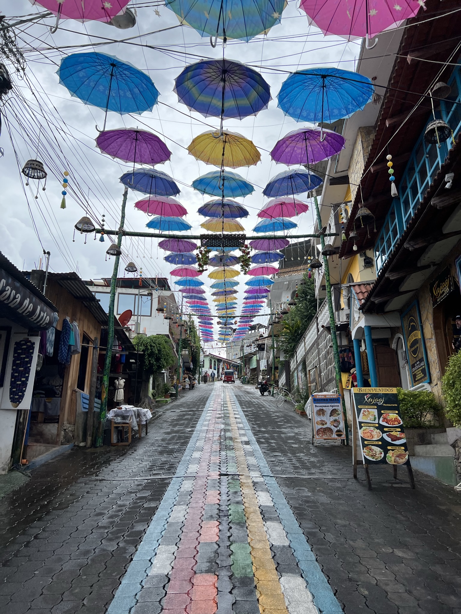 It doesn’t take a genius to figure out something’s different in San Juan. It does, however, take a while for it to sink in. It’s the astounding lack of tourists – and man, did I appreciate that. Turns out, there’s a local law that prevents foreigners from owning land in the town, with the Tz’utujil being free to live there in peace. If there’s anything else that’s not too difficult to notice either, it’s all the colours that adorn the town. But it’s not just the buildings here – it’s also the pavements that have all kinds of patterns, from mosaics to actual paintings, and all kinds of stuff hanging down from telephone lines such as hats and tassels. Add to that the tons of painted canvases on the outside of hundreds of art shops and you get the most vivid of the towns surrounding the lake. Très chic.