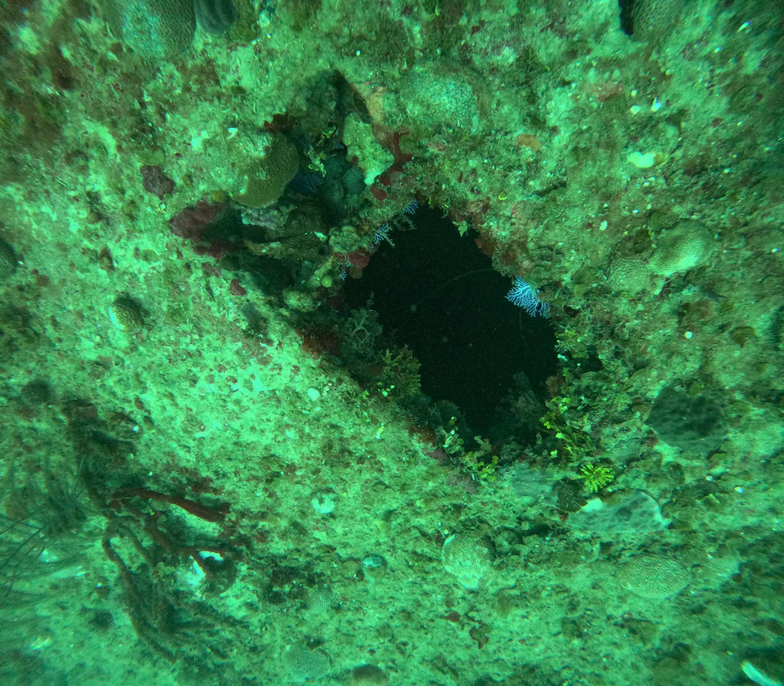 We started at the base of the ship, where coral had taken over its entire sides, fairy basslets and angelfish swimming around it mindlessly. Then we went over its deck – a grid with recesses full of coral and sea plants – and peeked through a door that stood at the front, though we couldn’t access it without a wreck specialty course. But honestly, that felt good enough. Everything around the ship seemed fascinating in and of itself. We continued spiralling upwards, accompanied by a large snapper, until we had explored the entire exterior from bottom to top, its roof practically covered in rod corals, making for a spectacular view.