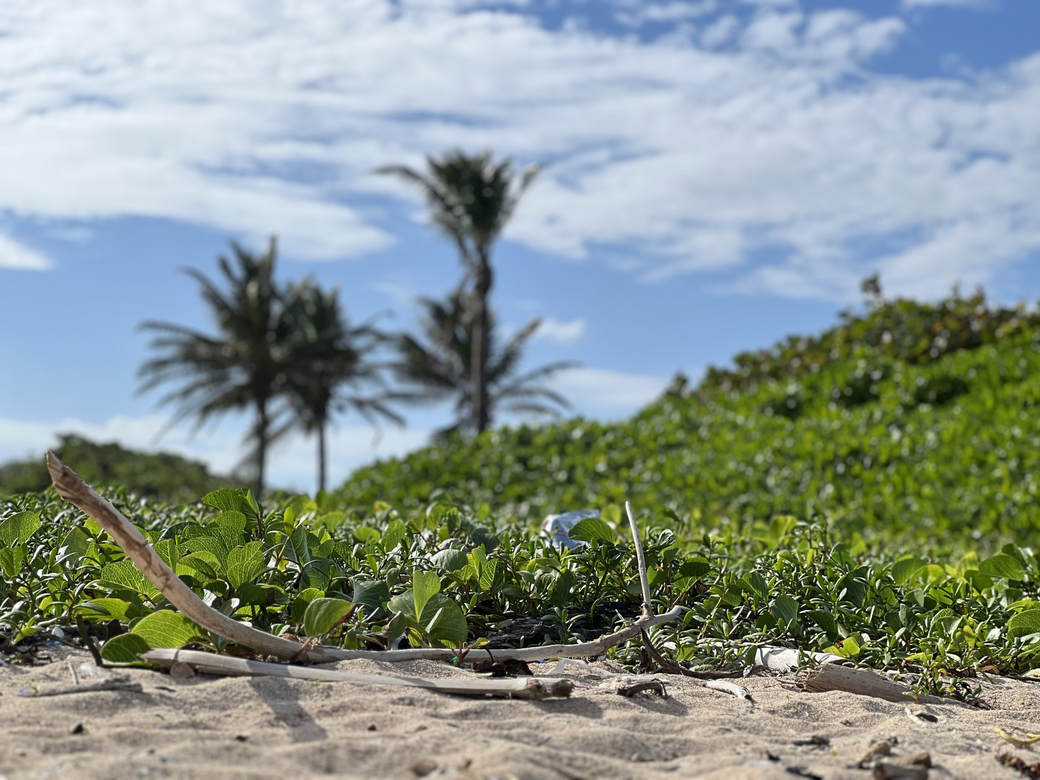 Next up was supposed to be Pumpkin Hill – a 75-metre-high elevation on the northwest side of the island with supposedly great views of the coastline. Unfortunately, the road leading there was closed, and since we were already caked in mud from the wheels, we gave up and made for a nearby beach.