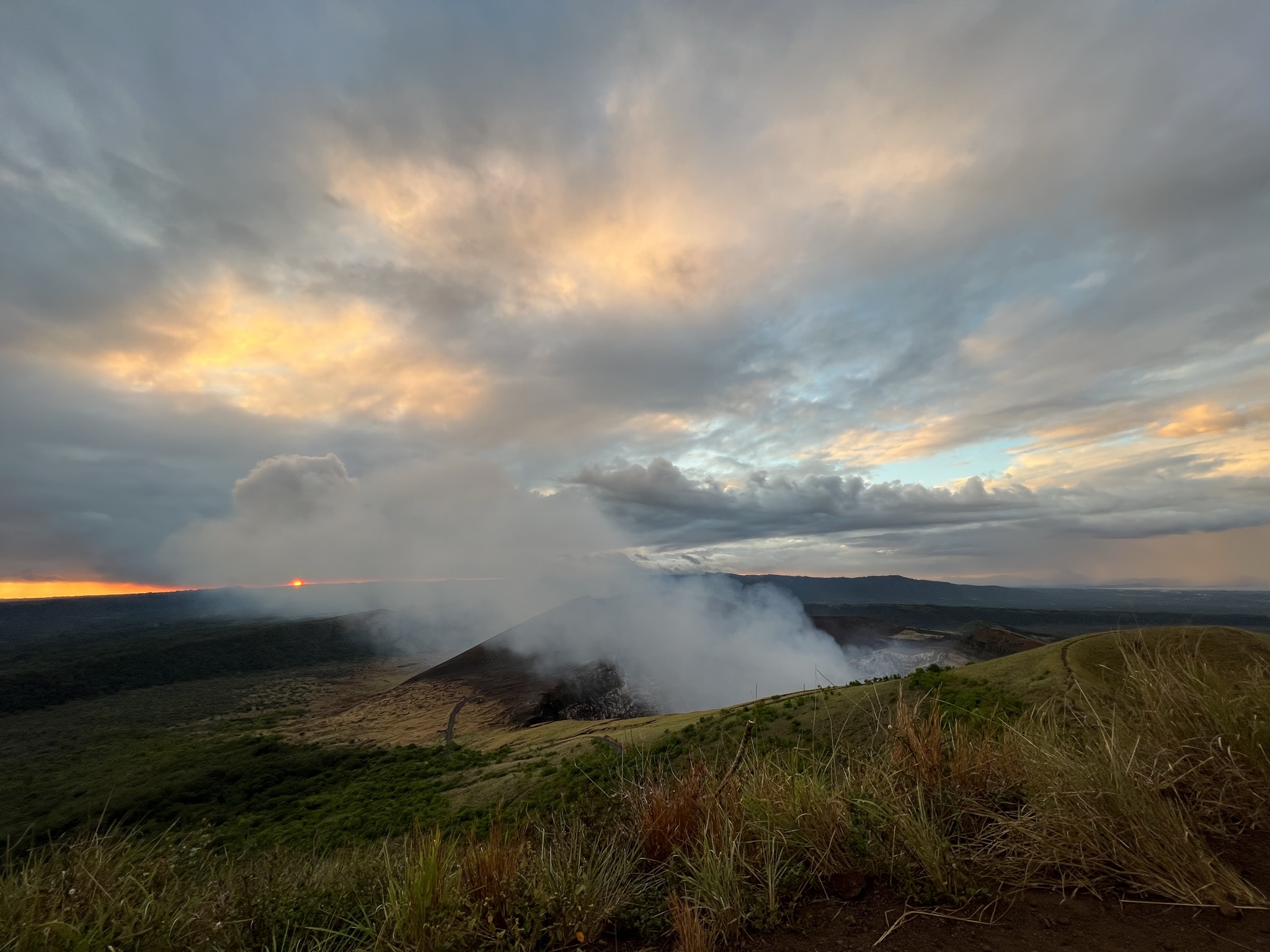 It was yet another spectacular view, with parakeets flying back into the craters to call it a night – the only species impervious to the fumes of the active vents. On the other side, the sun was setting right behind Nindirí, making us feel lucky and privileged to witness such a glorious scene – despite our bodies actively trying to give up on us.