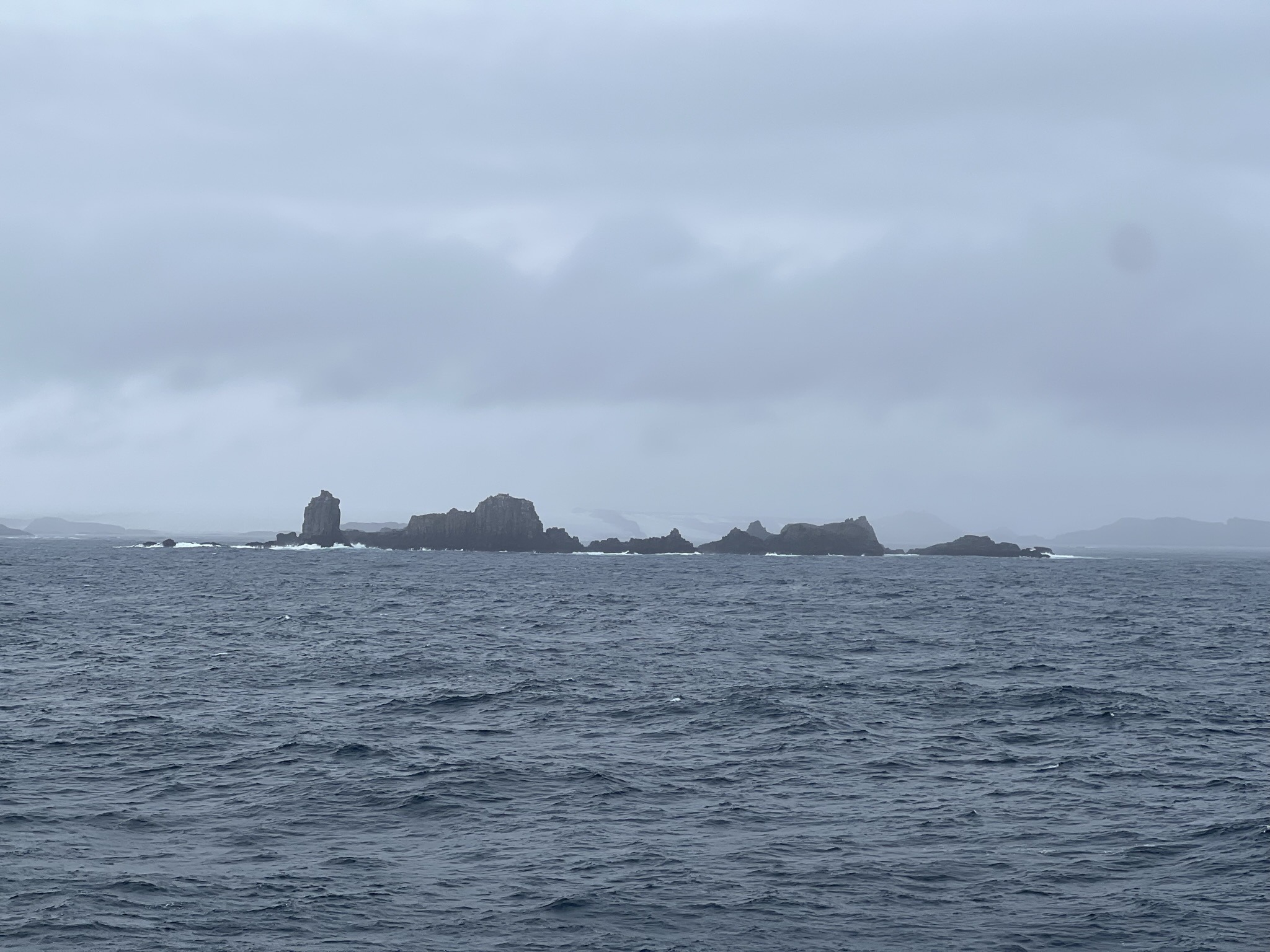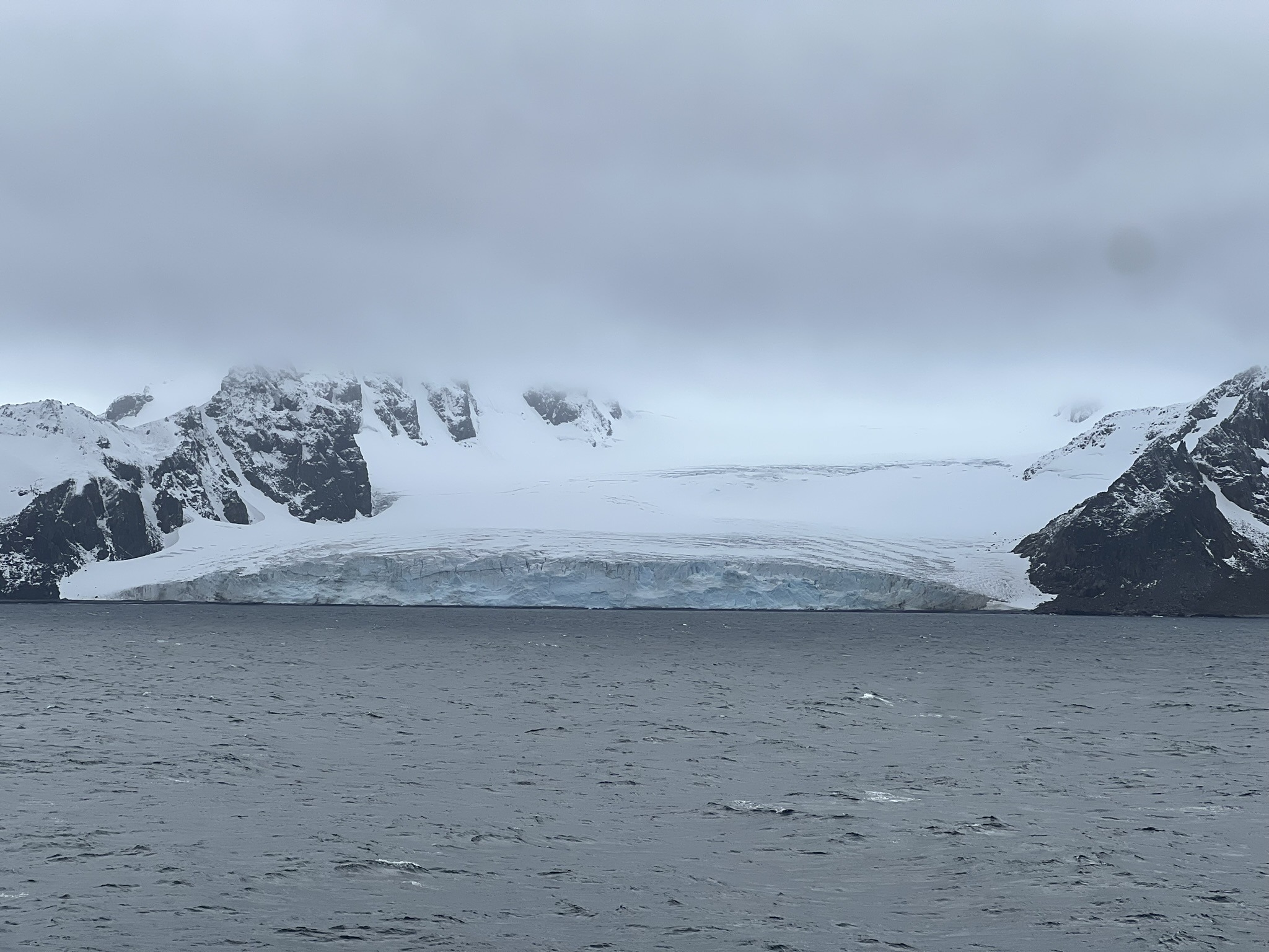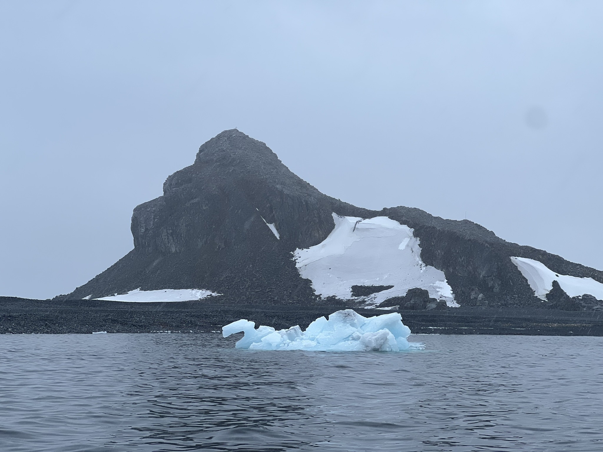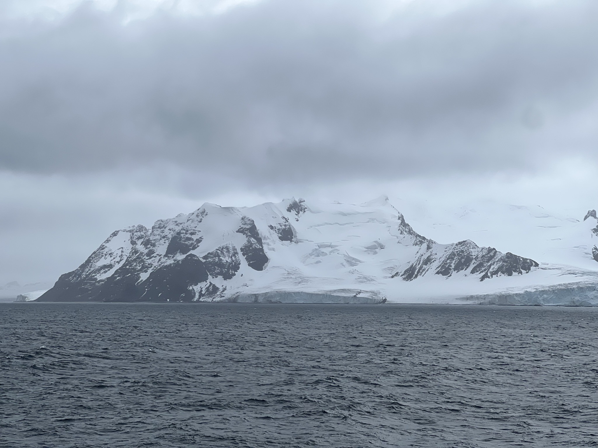 For the first time since departure, the bow was opened for access, as conditions had finally improved. We practically ran up the moment the announcement was made and stood there for ages, soaking in the blue-grey sea, the heavy sky, and the endless albatrosses and petrels gliding past while rain and freezing gusts pelted us relentlessly. Then, faintly at first, something appeared on the horizon. After two days surrounded by nothing but seemingly endless ocean, we finally got to shout “Land ho!” as the South Shetland Islands emerged through the mist, their rocky slopes draped in pristine white snow.