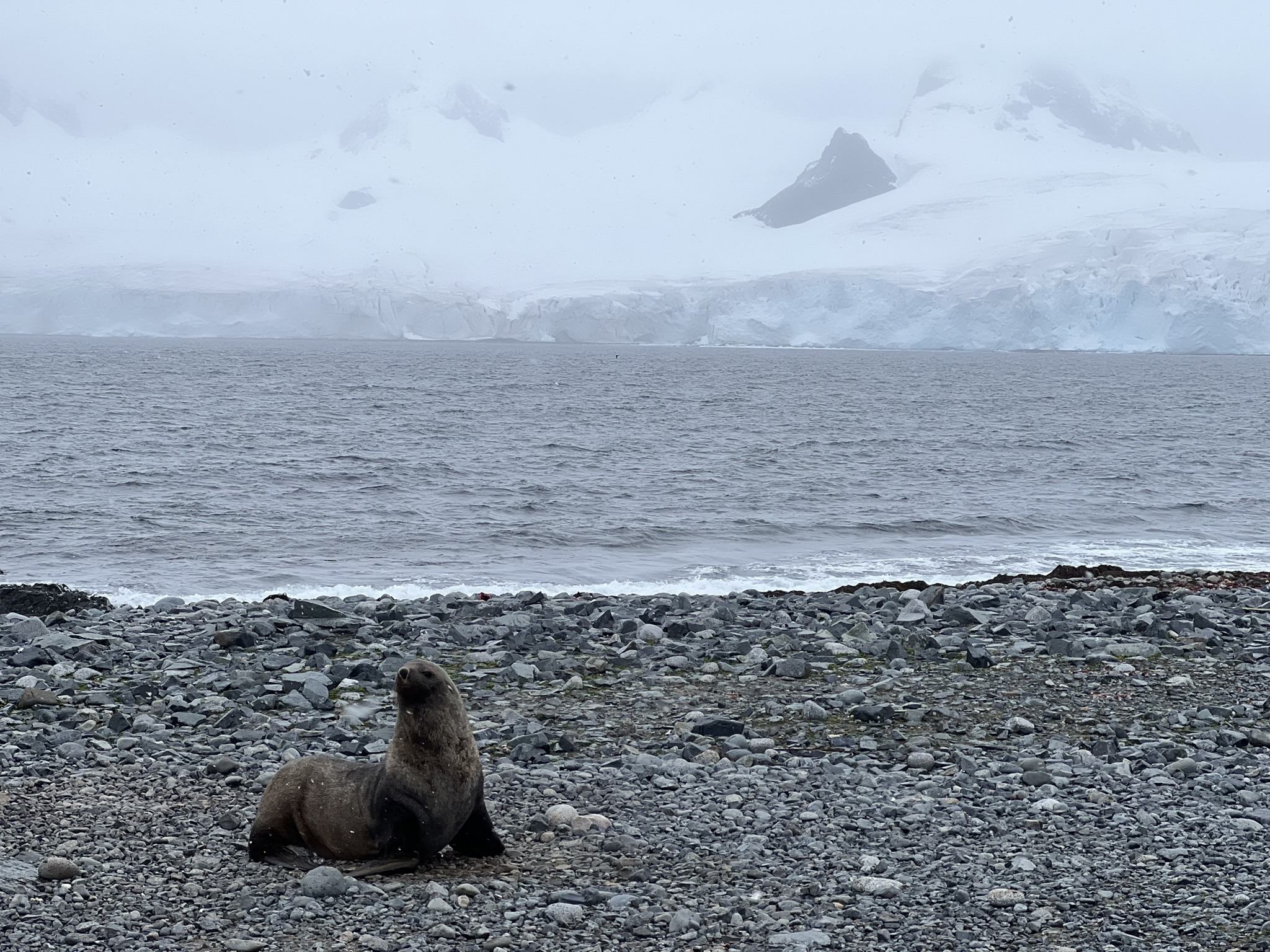 We continued on, encountering more gentoos and fur seals, each one halting my progress as my thumb grew sore from relentless photography. Everything felt unreal, and I needed proof, despite knowing photos could never do the place justice. Penguins and seals are ridiculously photogenic, always finding the perfect spot, striking a pose, and then doing something so absurd you’re forced to take ten more photos. Like the two seals that began playfully biting each other before escalating into a friendly joust. Even while respecting the distance, I managed to annoy one, lying down to get a better angle, only to be charged by a growling seal who made his displeasure very clear.